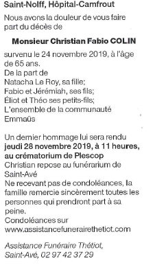 Décédé à Vannes (56000, France) le dimanche 24 novembre 2019 à l'âge de 65 ans
