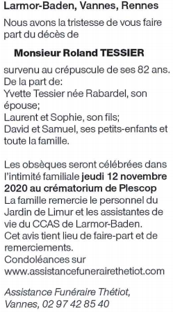 Décédé à Vannes (56000, France) le samedi 7 novembre 2020 à l'âge de 82 ans