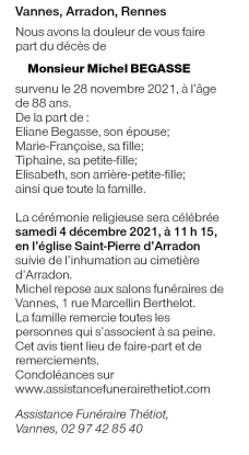 Décédé à Vannes (56000, France) le dimanche 28 novembre 2021 à l'âge de 88 ans