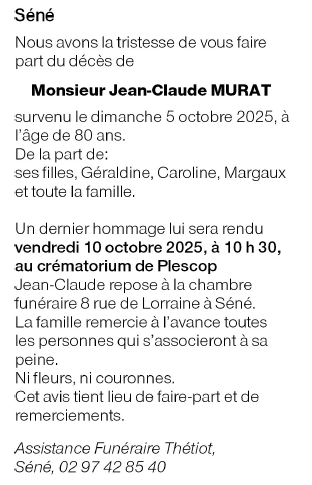 Décédé à Sene (56860, France) le dimanche 5 octobre 2025 à l'âge de 80 ans