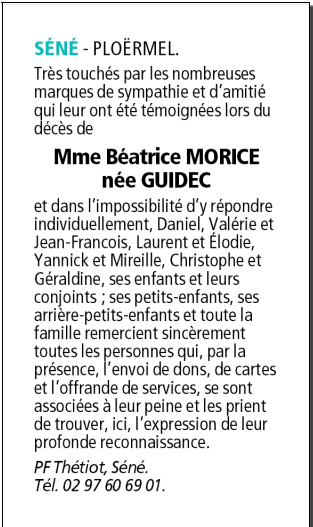 Née à Guénin (56150, France) le mercredi 24 août 1949