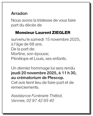 Décédé à Vannes (56000, France) le samedi 15 novembre 2025 à l'âge de 68 ans