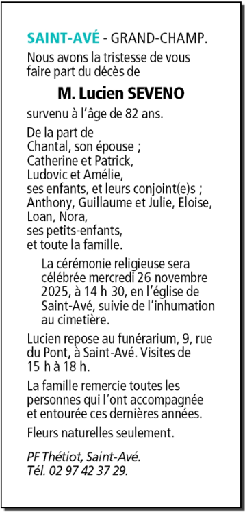 Décédé à Vannes (56000, France) le samedi 22 novembre 2025 à l'âge de 82 ans
