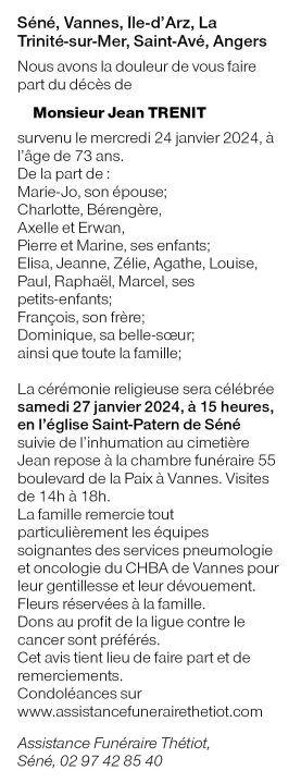 Décédé à Vannes (56000, France) le mercredi 24 janvier 2024 à l'âge de 73 ans