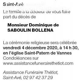 Décédé à Vannes (56000, France) le lundi 30 novembre 2020 à l'âge de 73 ans