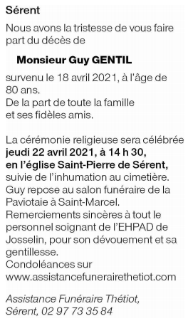 Décédé à Josselin (56120, France) le dimanche 18 avril 2021 à l'âge de 80 ans
