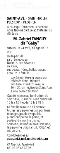 Décédé à Vannes (56000, France) le vendredi 24 avril 2020 à l'âge de 87 ans