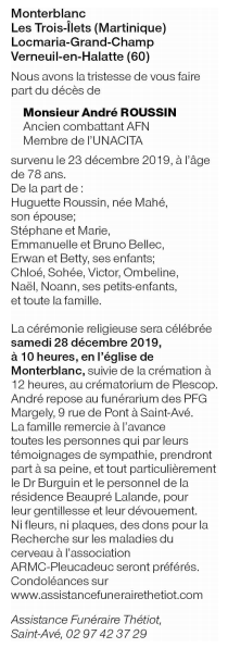 Décédé à Vannes (56000, France) le lundi 23 décembre 2019 à l'âge de 78 ans