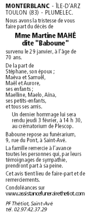 Madame Martine MAHÉ née RIVAL