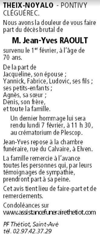 Décédé à Theix-Noyalo (56450, France) le mardi 1 février 2022 à l'âge de 70 ans