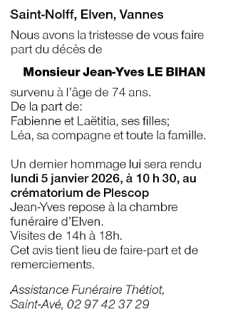 Décédé à Arzon (56640, France) le mercredi 17 décembre 2025 à l'âge de 74 ans