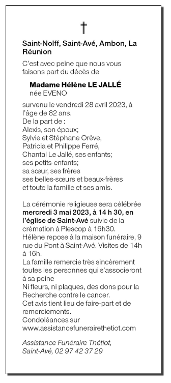 Madame Hélène LE JALLÉ née EVENO