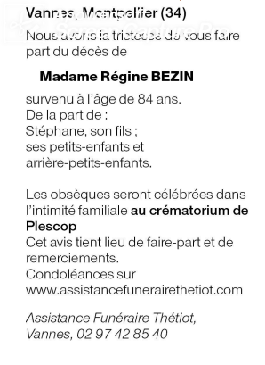Décédée à Vannes (56000, France) le vendredi 21 février 2020 à l'âge de 84 ans