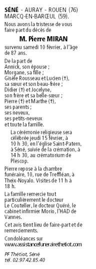 Décédé à Sene (56860, France) le samedi 10 février 2024 à l'âge de 87 ans