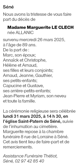 Décédée à Vannes (56000, France) le mercredi 26 mars 2025 à l'âge de 89 ans