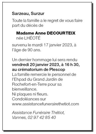 Madame Anne DECOURTEIX, née LHÉOTÉ