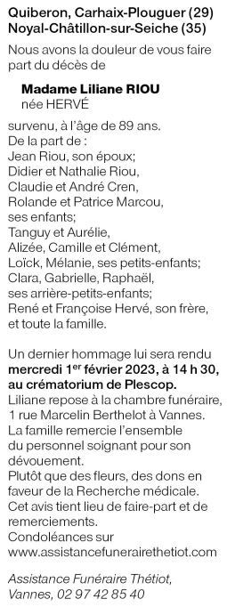 Madame Liliane RIOU née HERVE