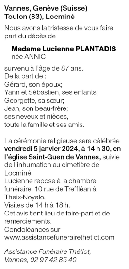 Décédée à Vannes (56000, France) le dimanche 31 décembre 2023 à l'âge de 87 ans