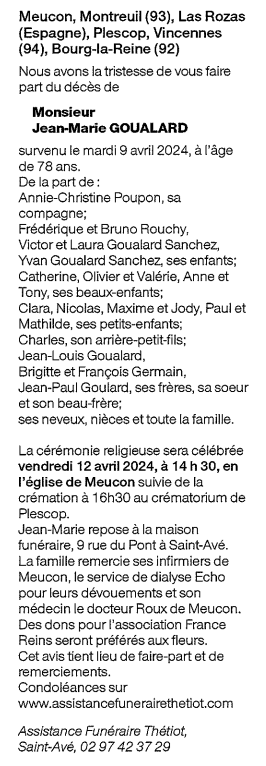 Décédé à Vannes (56000, France) le mardi 9 avril 2024 à l'âge de 78 ans