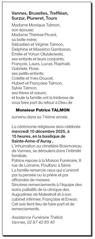 Décédé à Malestroit (56140, France) le jeudi 4 décembre 2025 à l'âge de 74 ans