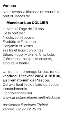 Décédé à Vannes (56000, France) le dimanche 11 février 2024 à l'âge de 79 ans