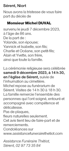 Décédé à Malestroit (56140, France) le jeudi 7 décembre 2023 à l'âge de 86 ans